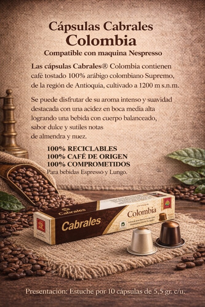 Cabrales Cápsulas Nespresso Colombia 55grs.